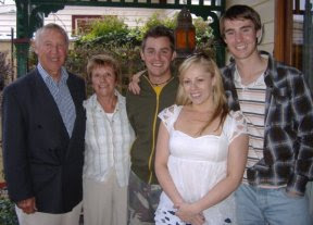 The Batesons are ‘Booming’. Congratulations to Peter and Rebecca in Australia on the news that Rebecca is pregnant. Here is a photo taken when they married. The happy couple are in the middle. Alan and Lynne will not be there for the birth but plan to fly over later that year.