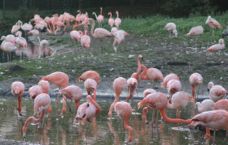 I was lucky enough to photograph some flamingos there. I was surprised that they made a noise like an agitated Donald Duck, so you can imagine the noise when I came upon so many in Tierpark.