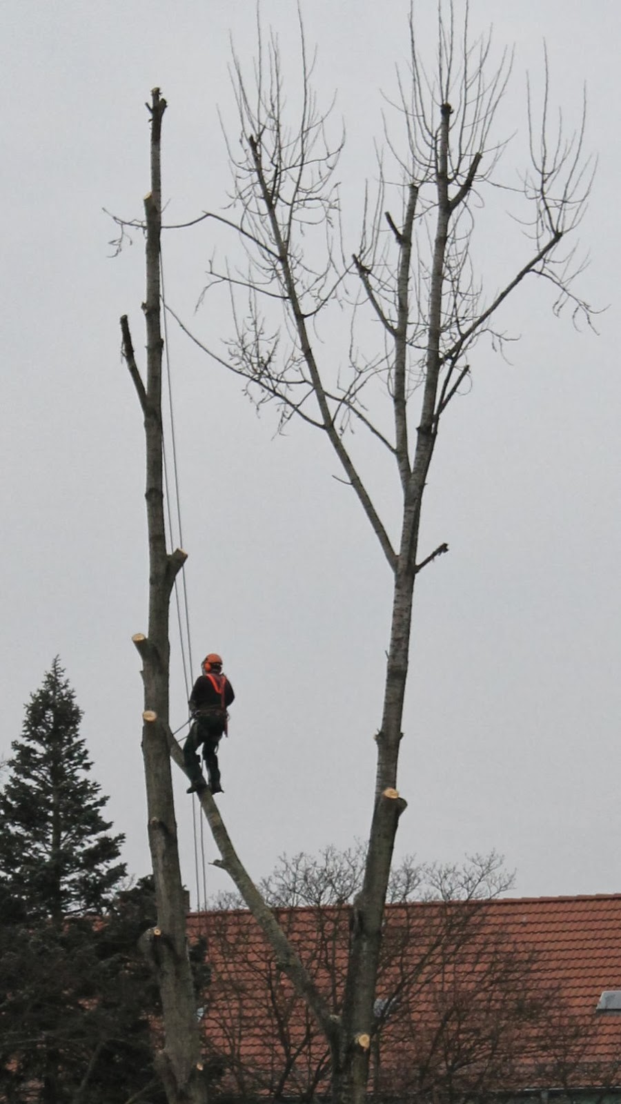 On the way up he sawed off all the smaller branches until we were left with two main trunks. He got to the top of one and sawed his way down.