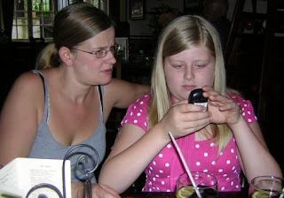 He met and married Julie and they had a daughter, Laura now 12, and a son, Matthew now 8, and we kept in touch. He speaks business German and French and they have been to Berlin a few times. Julie really likes Berlin and says she could live here. Laura likes German and is now learning French at school. I know the children are very technical so I gave them a problem to solve on my English mobile phone. Laura solved the problem in a few minutes in the restaurant where we started the evening.