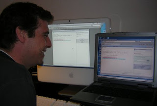 Yes, yesterday I tried a new programme to see if I could use it for distance learning-teaching. It is called EtherPad. It is in beta but it worked. I tried it out with Jens after his lesson and there is a pic of him and the computer screens showing
