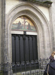 The town is dominated by three buildings. The Schlosskirche, (Palace Church) with its famous door, where he is said to have nailed his 94 theses, in 1517, attacking the papal trade in indulgences. The building is now dominated by the tower with the words ‘Mein Gott ist ein Festes Burg’ at the top. It was built when the town passed into Prussian authority, and commemerates Bach’s setting of these words in a famous cantata.