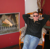 It is spargel time in Germany and I really like them with a Schnitzel and potatoes with butter sauce. Mmmmh…very nice and even better with a cool beer or light dry white wine. You can see me relaxing after the meal and posing in front of the Friedenswarte. The first pose is of me with the steps in the garden.
