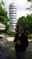 It is spargel time in Germany and I really like them with a Schnitzel and potatoes with butter sauce. Mmmmh…very nice and even better with a cool beer or light dry white wine. You can see me relaxing after the meal and posing in front of the Friedenswarte. The first pose is of me with the steps in the garden.