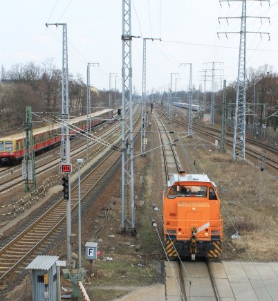 I took some photos of the railway tracks leading to Karlshorst, then I climbed a wall on the bridge to get a shot in the opposite direction. It is a shot to the power station with the railway service/repair/cleaning station in the foreground. It is a huge area.