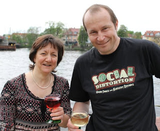 After a 50 minute wait a No. 27 Tram arrived. Full – no surprise there! I squeezed in. I arrived late at Rathaus/Town Hall Köpenick to see Falk and Elvira anxiously waiting for me. A short walk to the side of the river and an empty table. Time to celebrate the Winzer Fest. It means a wine festival.