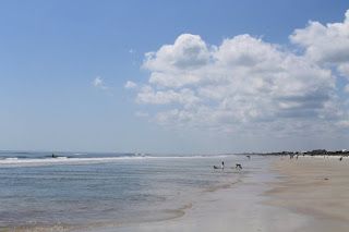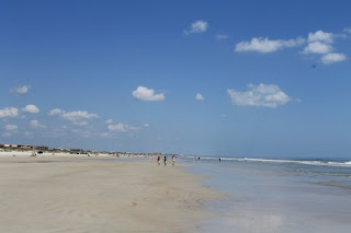 I took one shot of the beach to my right/the south which I was later to explore. It was almost empty. The next was a shot to my right. A view to St. Augustine and with more tourists on the beach.