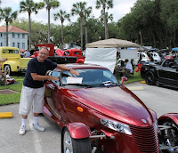 Here is pic of me with the car I hired, and with a few other cars I didn’t hire 🙂 We drove back to St. Augustine in a storm, and forecast for storms and rain in the next few days!
