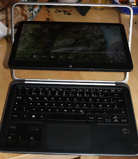 Peter bought himself a new laptop. I was allowed to play with it! It is a Dell and can be used as a standard laptop or as a tablet. It is all controlled by how you open the lid. If you open and turn it you get a laptop, if not, you get a tablet. See the photo. Very nice!