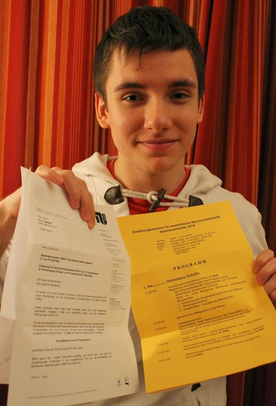 He had got written confirmation about starting at the Uni in early March. Here is a shot of him with said letter and looking very happy about it. He said he went to the ‘Turkish Market’ last Friday. This is held on the banks of a canal in Kreuzberg where you can get good fruit and vegetables for a very reasonable price. A lot of students shop there. Yes, price is key as always for students!