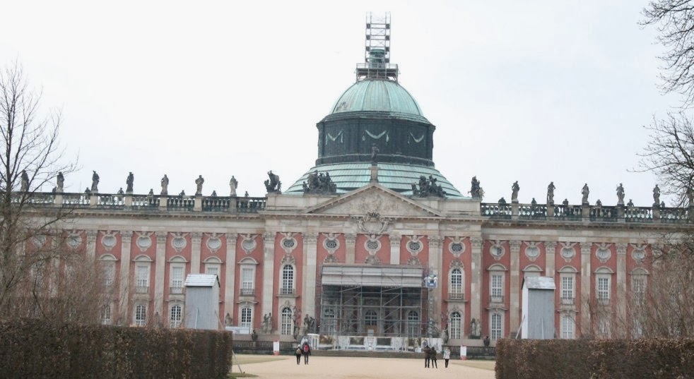 We continued our walk through Sanssouci Park towards the New Palace/Neues Palais. This is in the western part of the park. With a few stops for deep breathing we arrived at the palace.