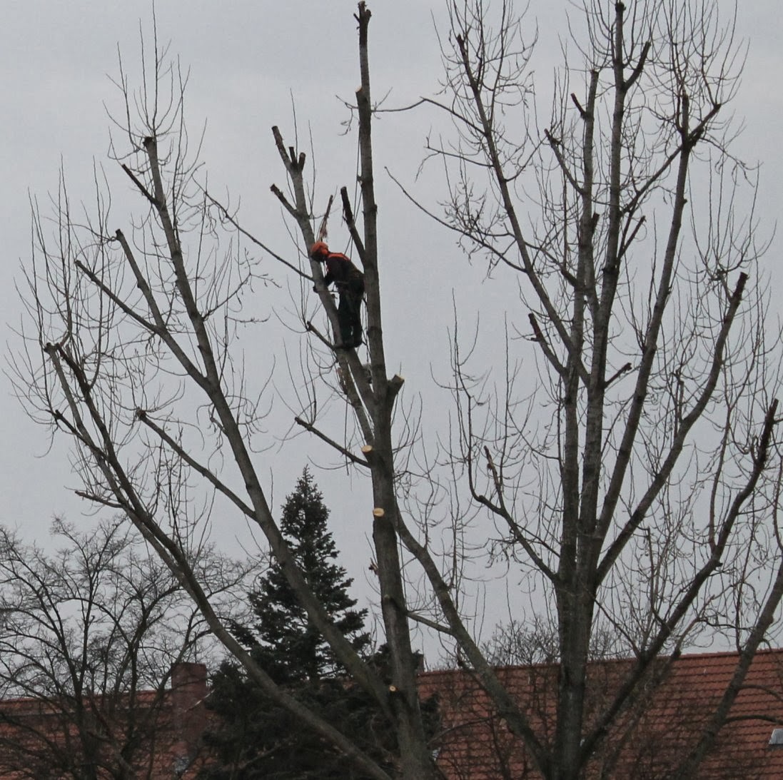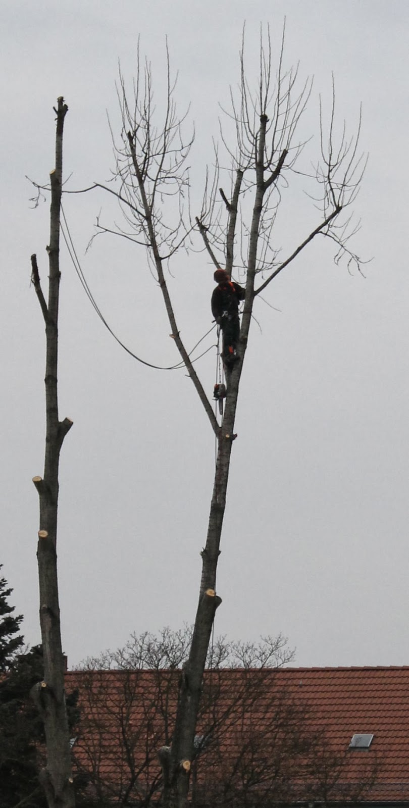 On the way up he sawed off all the smaller branches until we were left with two main trunks. He got to the top of one and sawed his way down.