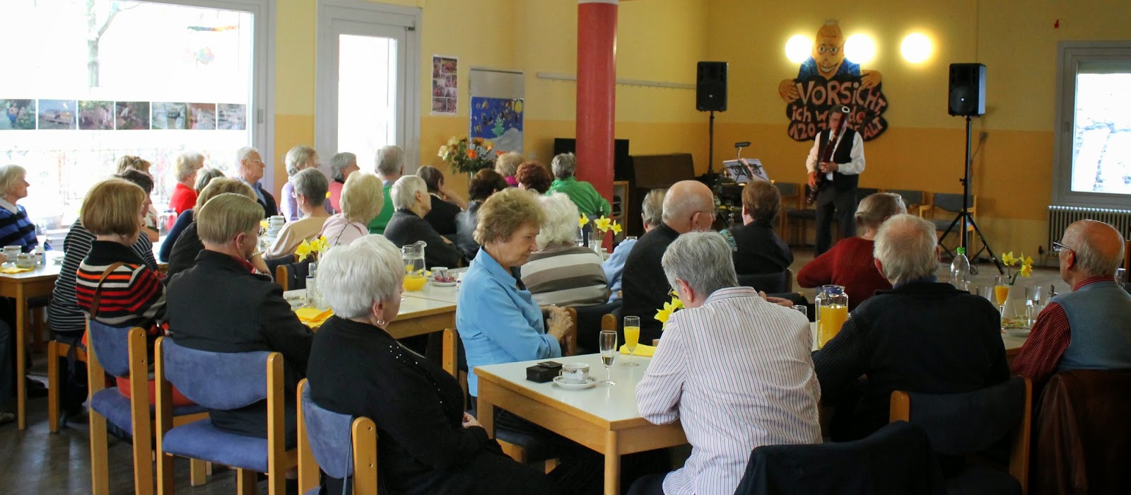 He had prepared the backing music in his studio at home. He played the bassoon to the sound of the backing music. The instruments for the backing music had all been played by him at home. A real musical talent. All the Oldies smiled, nodded, tapped their feet and reacted to the music in positive ways.