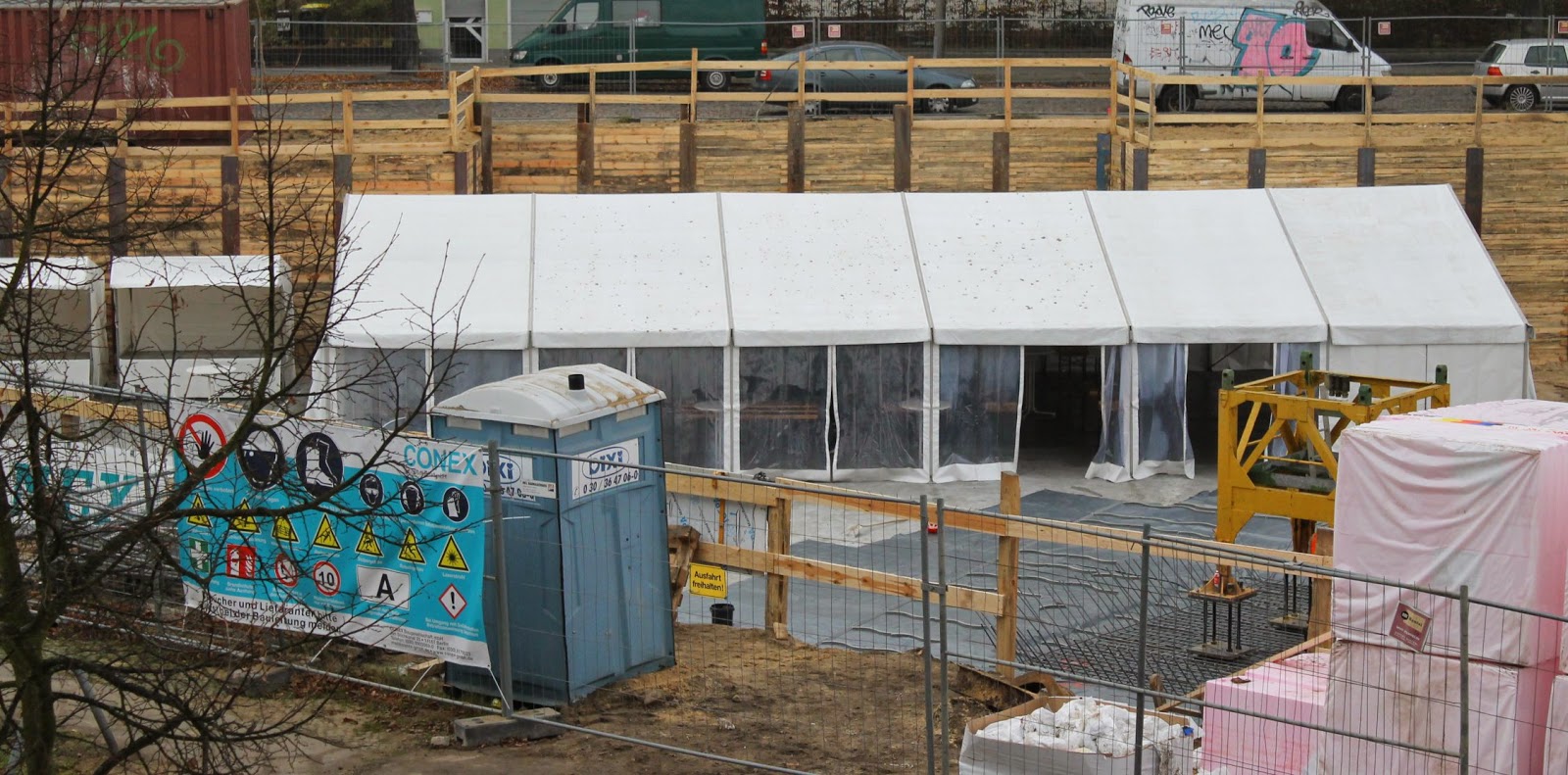 Where is the tent? Yes, you recognised the area. It is in a corner of the large hole in front of my flat. It is being furnished for an event starting at 11am on Saturday 22 November. I got an invitation as follows: ‘Einladung zur Grundsteinlegung’. It means an invitation to the laying of the foundation stone. I accepted immediately!