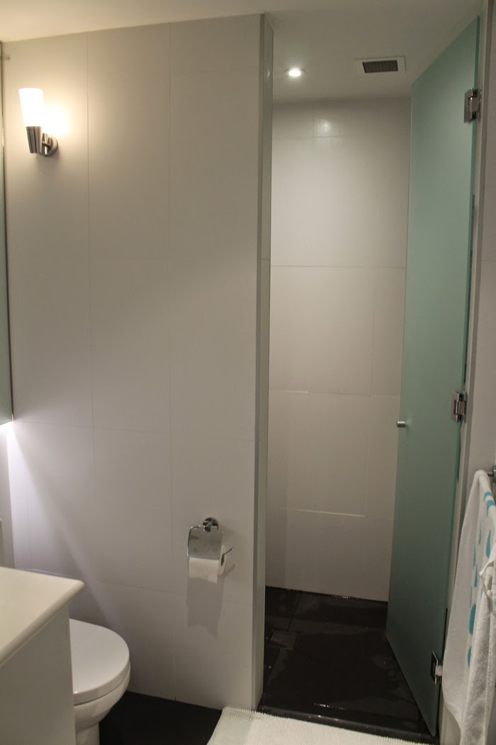 It also houses his work area/computers and I work from there to update this blog when not walking on the beach! The living room is open plan and fuses into the kitchen/dining room. My favourite is the bathroom. Look at this! Wow……it is a shower room. I could get half a football team in there to shower!