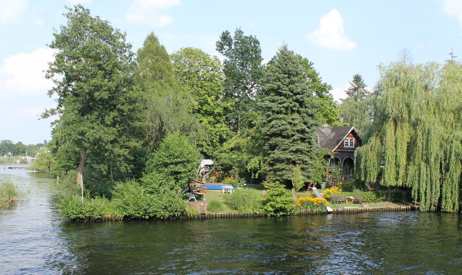 We found an almost empty ferry about to leave so we jumped on. The upper deck was empty so we settled in and ordered a cold beer. We sipped them as we took a one hour tour of the shores of the lake and even went into the smaller lake called the ‘Small’ Müggelsee.
