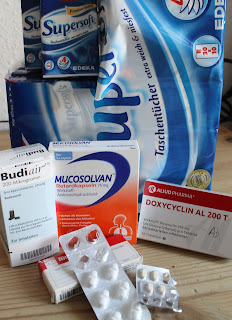 Since Monday life has been a blur of tablets, pills, inhalers and more pills while not sleeping and not sure what time of day it was. I went to my Docs on Monday. He diagnosed a not very nice strain of bronchitis.