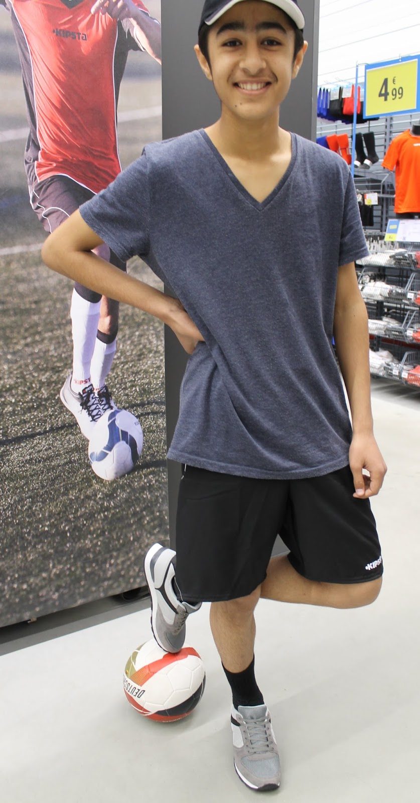 We went into the new sports shop and the children loved it. They ran around looking at all kinds of things for sporting activities until we took them to the sport-football corner. Big brother (A1) needed sport shorts for school sports. I had previously got him sport shoes and T-shirt. We found a pair he liked. He asked me to take a photo so he could send it to his friends who do not live in Germany. I agreed and you can see he really looks like a young football player.