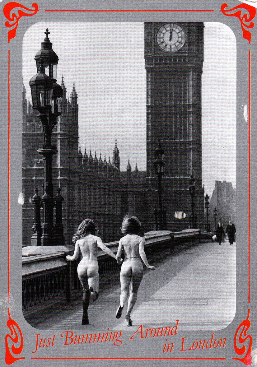 I liked the humor of the postcard so decided to share the smile with you. As you can read the card is titled, ‘Just Bumming Around in London’. This is a word play on the words ‘ to bum around’.