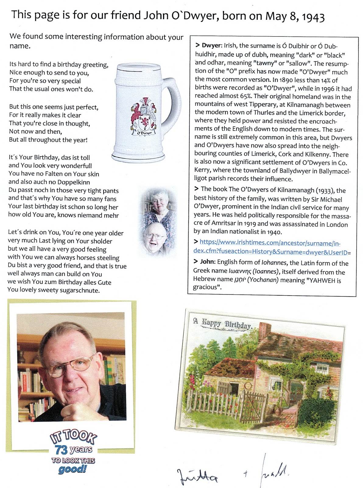 On my arrival from Dublin, I found a large envelope in my postbox. It was from them. They always make a ‘work-of-art’ on my birthday and this one was no exception. They have clearly put a lot of time and effort, as well as research, into producing this birthday greeting. I just had to share it with you for I know you will also enjoy it.