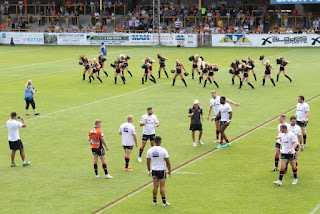 You can see the teams warming up helped by a team of ladies dancing and jumping about to very loud pop music. It certainly created a happy and friendly atmosphere. Sadly Cas lost by 32 to 44 against the Wolves. I always thought a tiger could eat/see off a pack of wolves. In this case, not. Even so, a great afternoon and weekend in Casland.