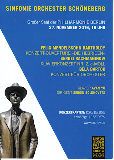 I told you in my last post that I was going to a concert at the Berlin Philharmonie on Sunday afternoon. Music played by Sinfonie Orchester Schöneberg. This is a local, amateur orchestra. I support it because they give any profits to buy instruments for talented children from poor homes.
