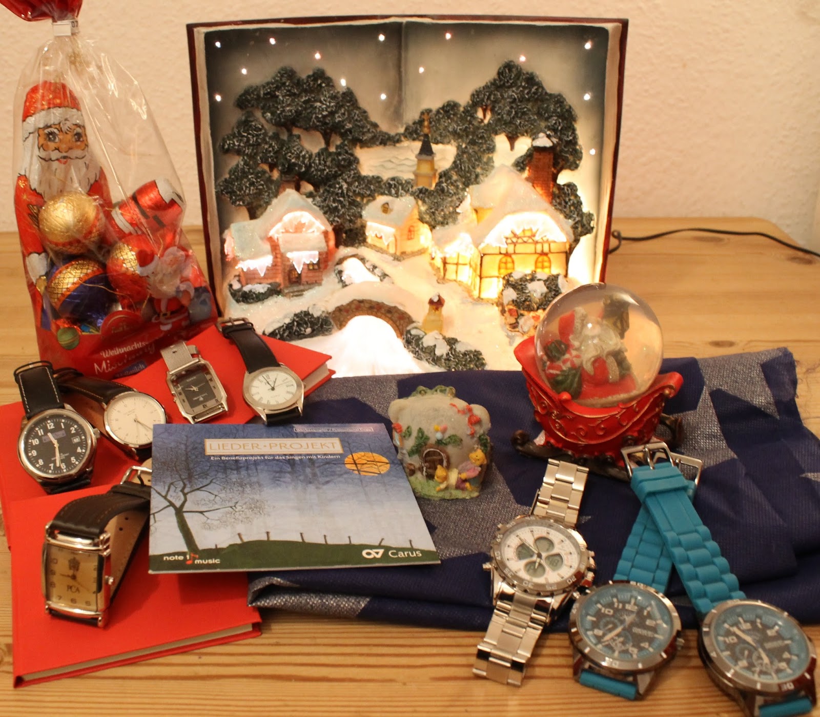 His new contribution you can see in this photo. The theme is Christmas and Time. Just look at the number of watches he has given. None of the family has a watch. A watch comes way down the list of things they need below clothes and school materials.