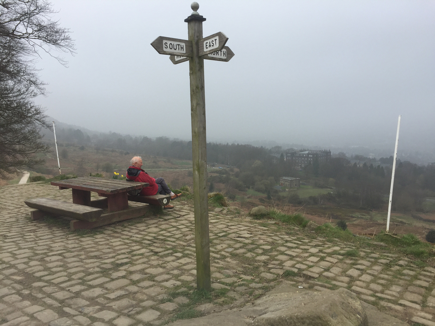 It was taken by Peter on his smart phone. Alan gave me permission to publish on my blog. I like all of the image and did not change anything except the size. Well done, Peter. Alan is facing north and looking into the valley. I like the whole composition and the view into the mist hanging over the valley bottom and river.