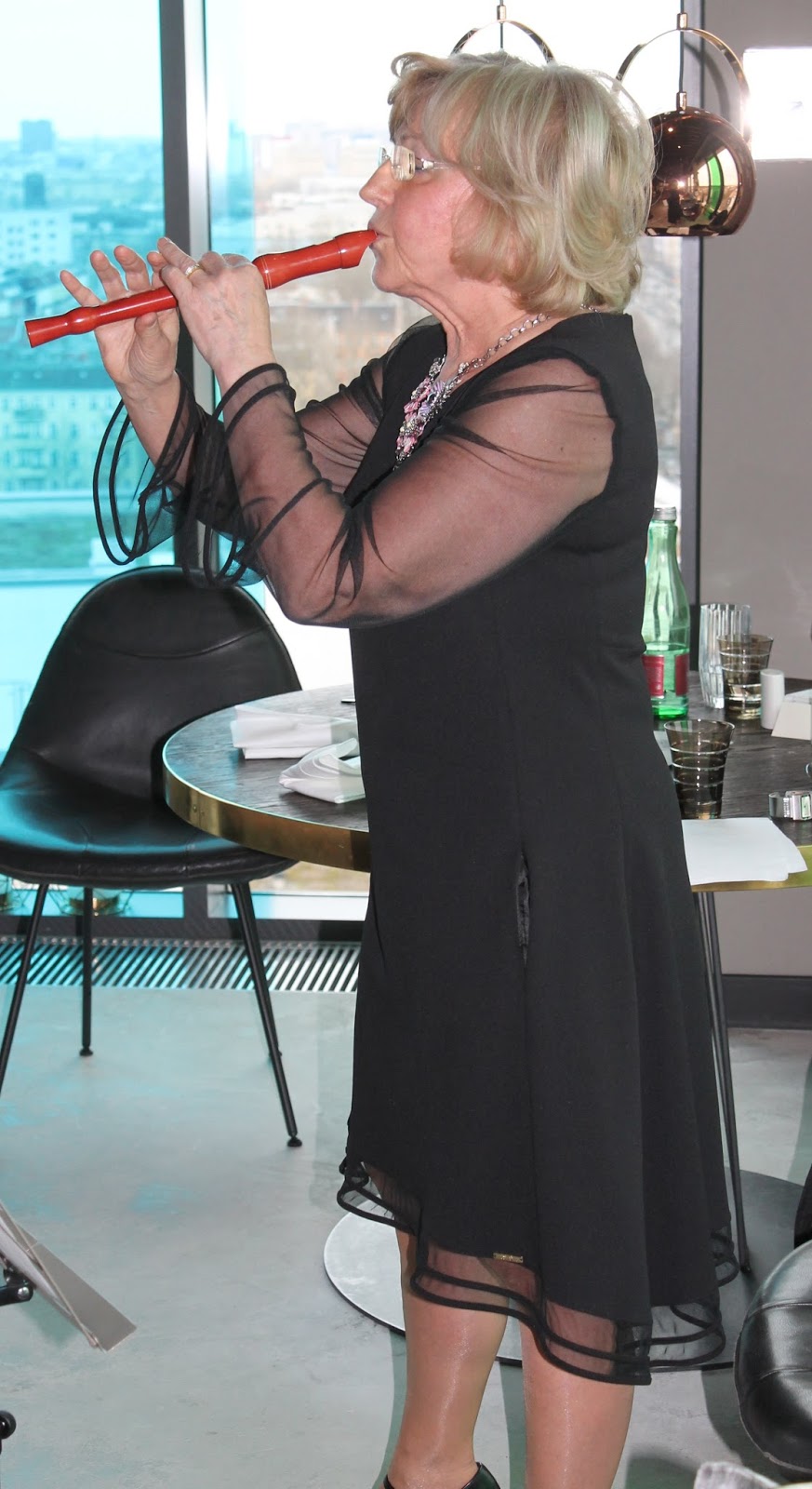 It was Frau Dr. Inge Pardon’s 70th birthday party. Here is a photo of her playing the flute. She also plays the accordion, speaks fluent Russian and is still a guest lecturer at the University of St. Petersburg. I met her via Birgit Gast. Inge and her husband, Dr. Dr. (yes he has two!) Michael Pardon had recently opened a language school on the Ku-damm’ and Birgit started teaching there. She told them about me and I was invited to teach a few test classes. The student report back was good so they offered me a contract, which I accepted. And so started a close relationship that has lasted until today.