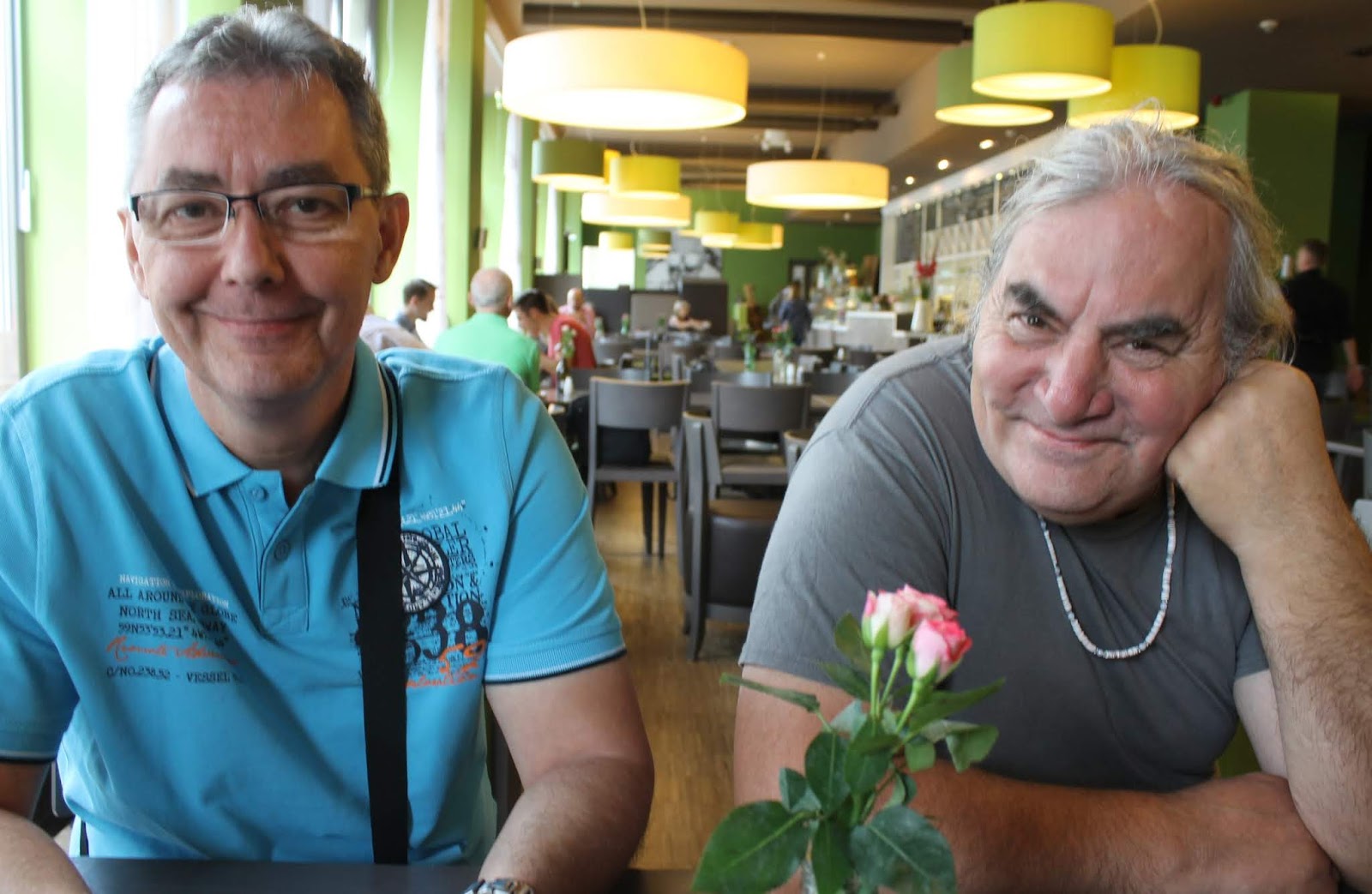 Guess where we had lunch? Right again – at the canteen/restaurant I told you about in recent posts about Ian’s visit. See photo. I enjoyed a very tasty fish dish. We exchanged news and information. The half-brother is younger than Imre. They have the same father. The half brother does not speak German or English so Imre had to act as translator. He learnt Russian at school but that didn’t help him much in Berlin.
