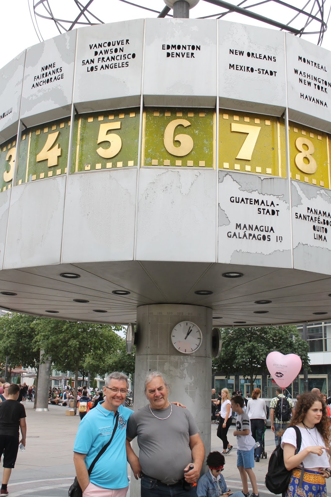 Imre had invited him to Berlin many times and finally he made it to an airport and landed in Berlin. Imre showed him around all the usual tourist sights in Berlin and asked us to meet yesterday afternoon. Guess where we met? Yes, you are right. At the famous clock in Alexander Platz. See photo.