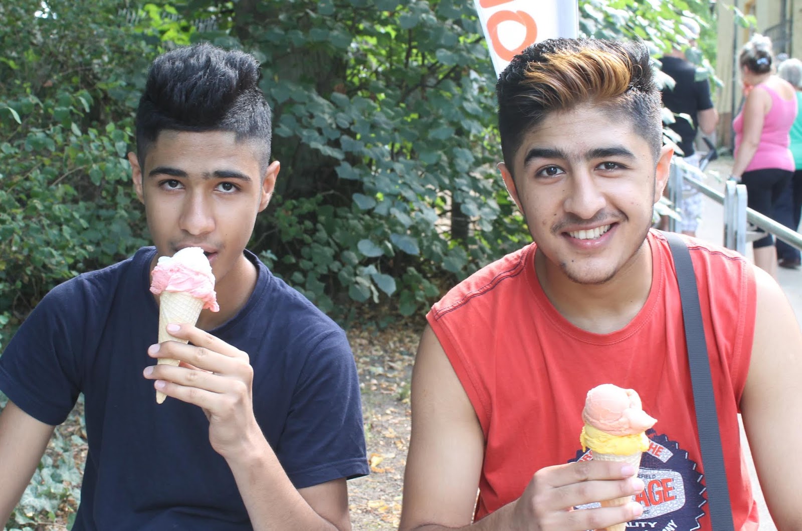 Phew, but yesterday was special. I miscalculated going on a cycling tour in 32°C with no food and little to drink. Big mistake. I met The Boys as agreed at 2.pm at a S-Bahn station. Starting so late was also a mistake but the boys wanted to sleep late. We left the train at station Petershagen as you can see from the photo.