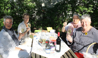 It started cool yesterday but improved as the day unfolded. I cleaned up my place, went shopping because it is a holiday weekend and the shops are closed tomorrow. I then cleaned the seats and table in the garden and waited for my visitors. Yes, my Kowalke Gang wanted to have an early supper in the garden and I found it a good idea.