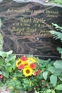 On Monday morning I bought some nice flowers and took them to my district graveyard. A short walk through the nearby garden houses and I arrived at one of the graveyard entrances. A few more steps and I arrived at Birgit’s family grave. I have posted about her before.