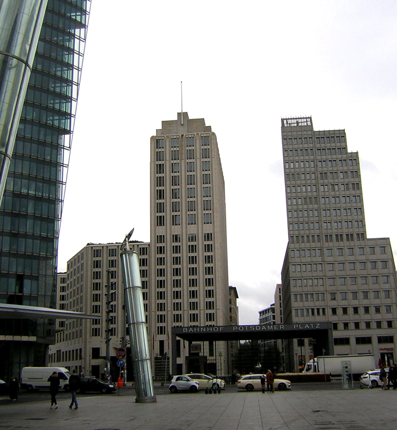 Potsdamer Platz (Potsdam Square) is an important public square and traffic intersection in the centre of Berlin Germany, lying about 1 km (1,100 yd) south of the Brandenburg Gate and the Reichstag (German Parliament Building), and close to the southeast corner of the Tiergarten park.