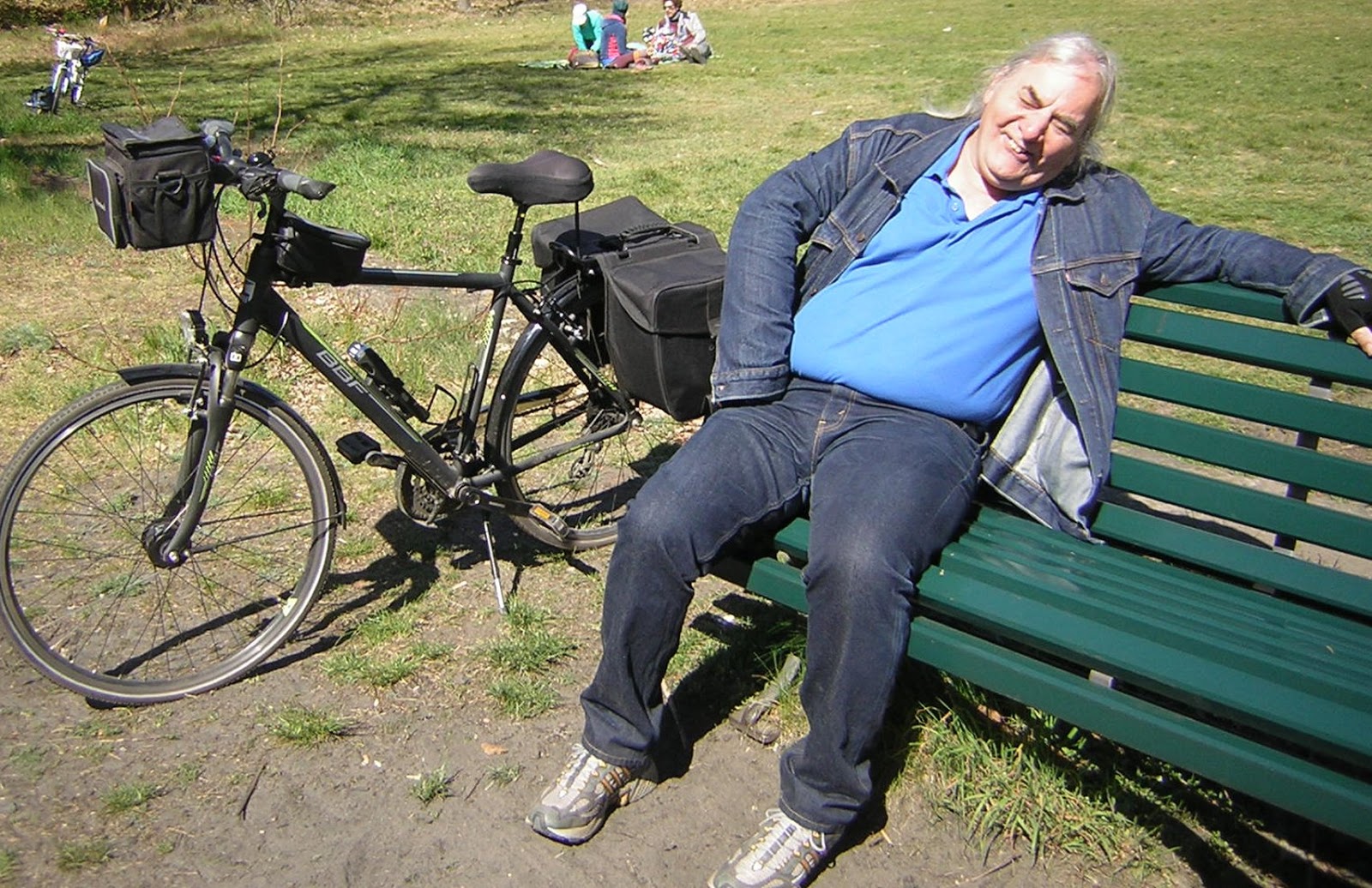 Yesterday started with reading my book in the sun on my balcony and ended with a lot of pain. I put the book away as Imre rang the bell and entered my flat at just after 11.00 am as arranged. He came on bicycle No. 1 and with Smartphone No. 3 which has two cameras. He likes it! He settled down to talk as he sipped fresh orange juice and chewed some cake. I listened to his latest news. He had not brought anything for a picnic so I made some sandwiches and we set off for a local park to enjoy the weather.
