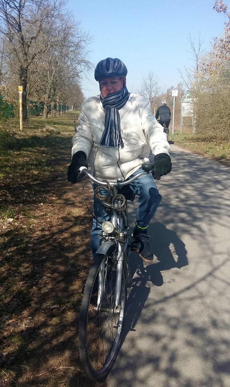I recently got this photo of me on a local bike ride, and taken before my fall. I am still covering the leg wound with medicament I got from my doctor. Now the calf is expanding and going hard and I have pain in my ankles. We have a holiday weekend coming so I shall wait until next week to see how it is and decide to see the doc again – or not.