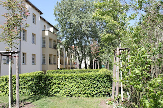 Talking of park and green areas, I told you in an earlier post that I walk in the big garden at the back of the flats where I live. I am fortunate to be able to do that compared to millions of people who live in small rooms with no access to greenery. Here is a photo of the front of the flats. You can see that we have a small one-way road in front. The other photo is of the garden at the back of the flats. It also has play areas for children and seats/tables for picnics and grill evenings. I just walk in it!