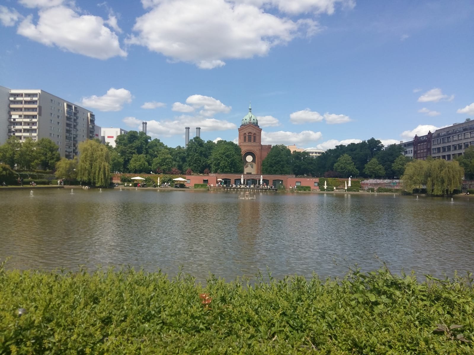 I went on a walk a few days ago with Johanna. She wanted to visit Kreuzberg, which is an inner district of Berlin. As Berlin expanded in the late 1800s, a canal and small lake was constructed which ended in Kreuzberg. The canal was destroyed by bombing in WW2 and the small lake was later linked to underground water and the area became a popular one for walks ending at the lake. A bar – restaurant was also built. Perfect for the end of a walk!