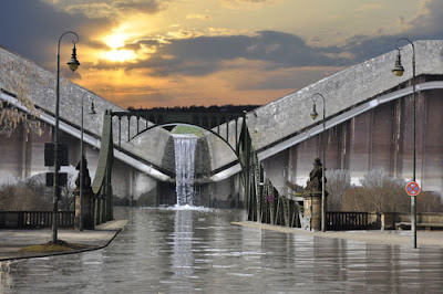 He created another one this afternoon which is a fantasy image of water and a bridge. I really like this one, and he created it very quickly.