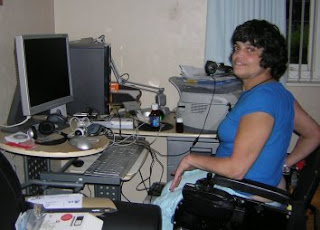 Later we took Linda to her nice ‘techie’ house and there I took a pic of her with all the computer things specially set up to help her. At the end she finally managed to take a pic of us as we left and you can see the nice look of surprise and pleasure on her face. A memorable day for all.