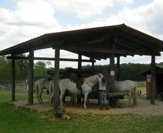I don’t eat ‘Eis’ so I left them to eat and wandered over to where the ponies are kept. I took this shot of them. Even the dogs were asleep, as you can see. There was a little pony and a girl led it into the training area and she was about as old as Scarlett!